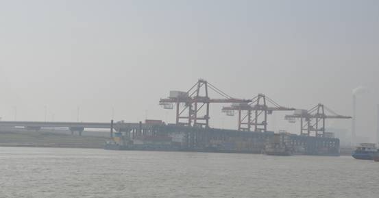 调研组实地察看港口岸线(城陵矶国际集装箱码头)
