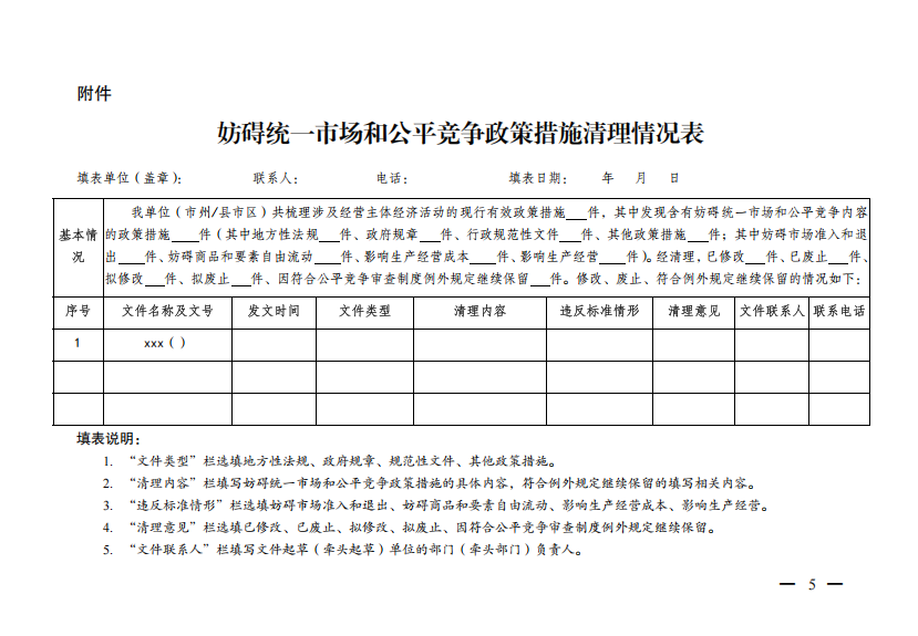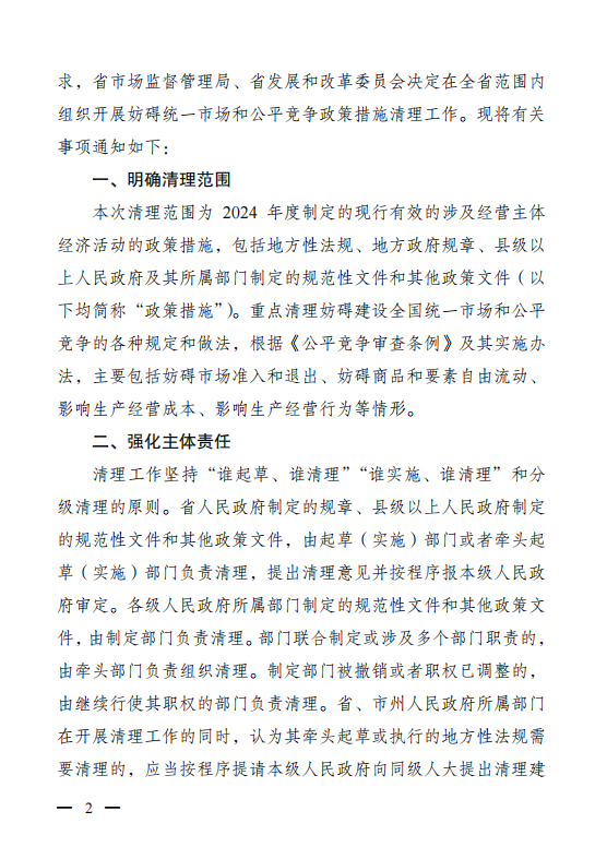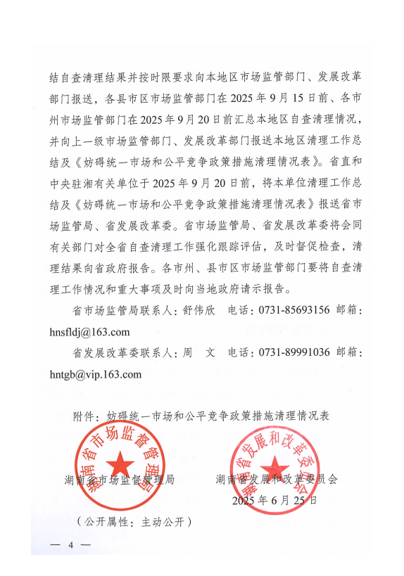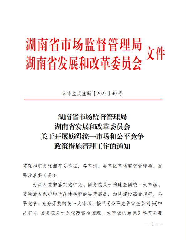 湖南省市场监督管理局 湖南省发展和改革委员会 关于开展妨碍统一市场和公平竞争政策措施清理工作的通知