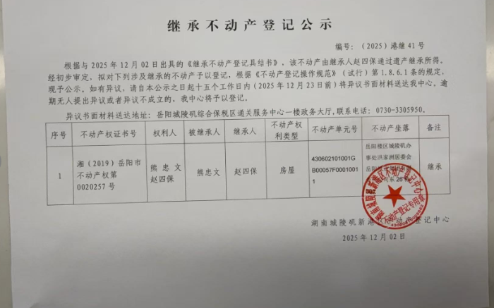 继承不动产登记公示(赵四宝)