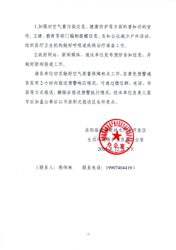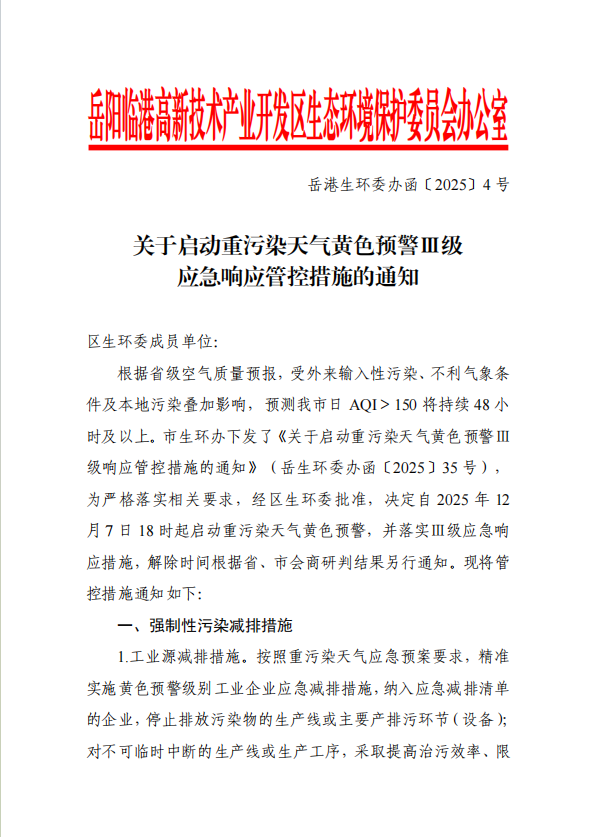 关于启动重污染天气黄色预警Ⅲ级 应急响应管控措施的通知