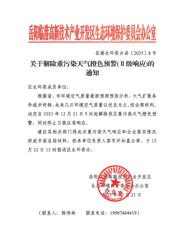 关于解除重污染天气橙色预警(II级响应)的通知